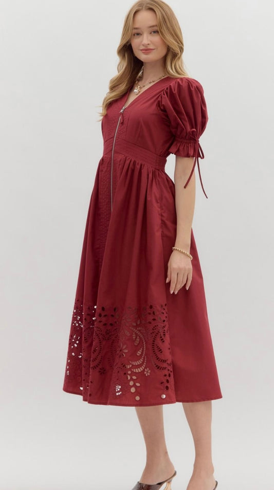 Paloma puff sleeve zipper front dress
