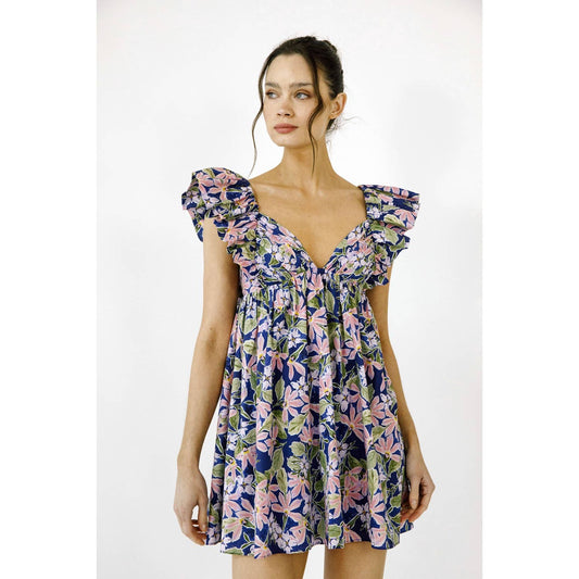 CATE LARGE MULTI-FLORAL PRINT BABY DOLL MINI DRESS