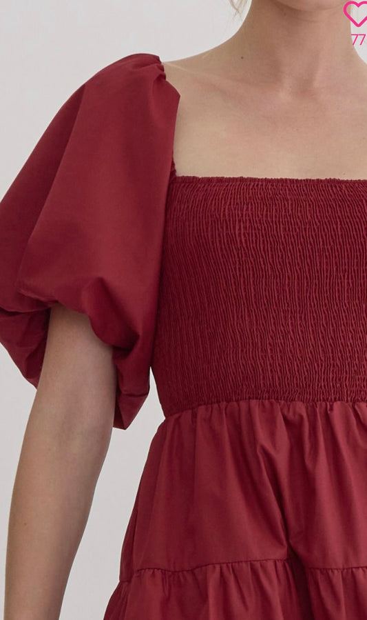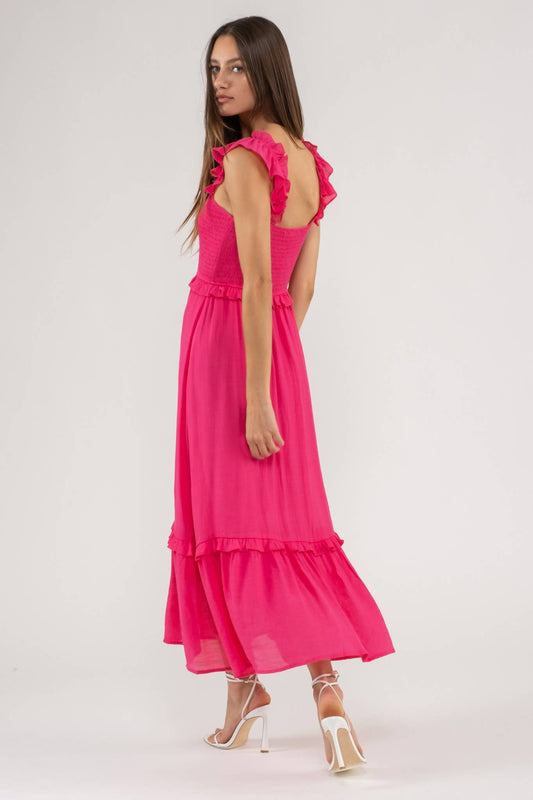 FLUTTER SLEEVE SMOCKED MIDI DRESS