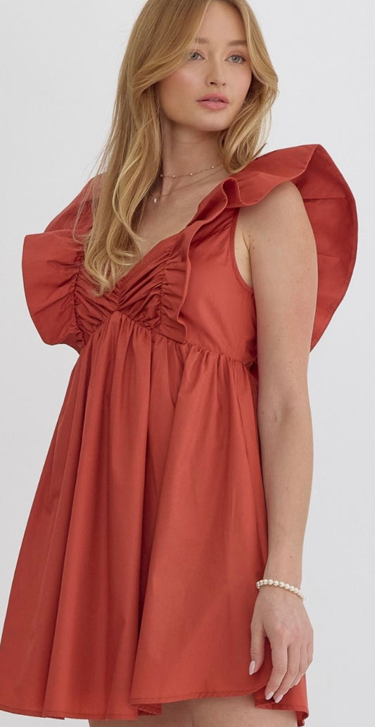 HAILS RUFFLE V NECK TUNIC MINI DRESS