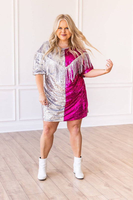 BL71333W-Sequin Floaral Emboid Hulter Mini Dress
