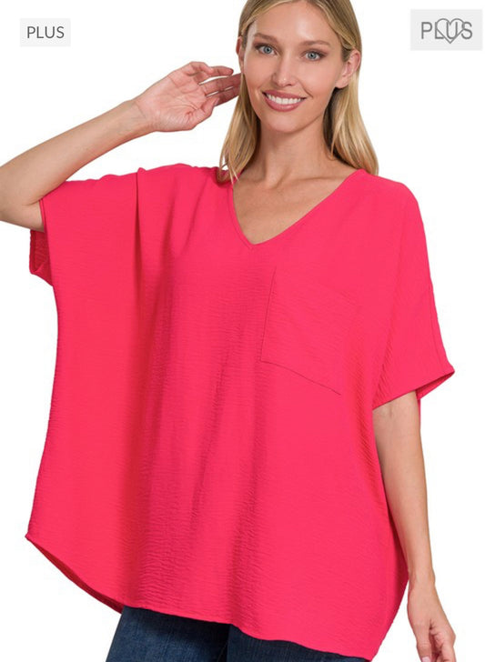 • ROXIE PLUS SATIN RUFFLE SLEEVES TOP BACK SELF CLOSER