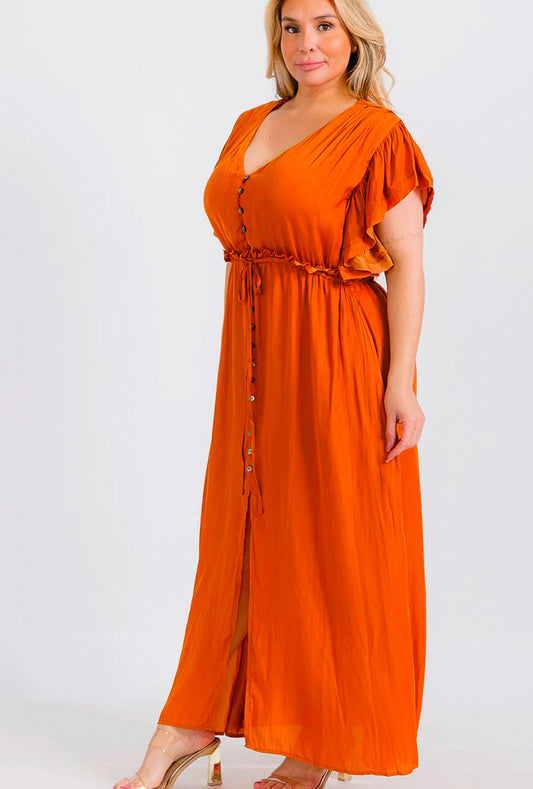 CHIFFON SPAGHETTI STRAP BODICE CURVY MAXI DRESS