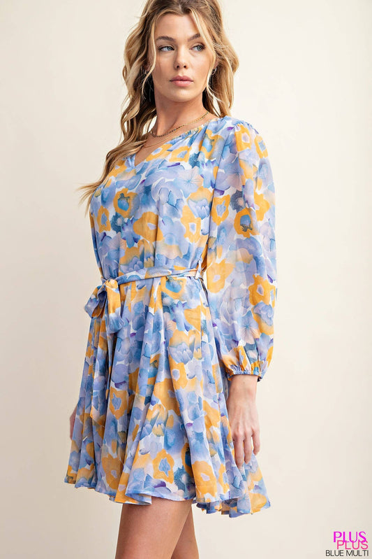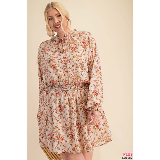 CURVY ROMANTIC FLORAL PRINT LONG SLEEVE DRESS