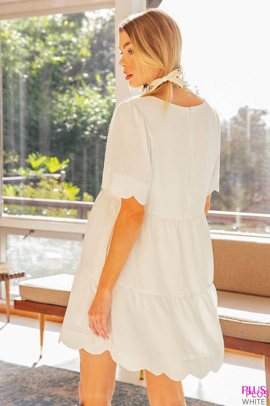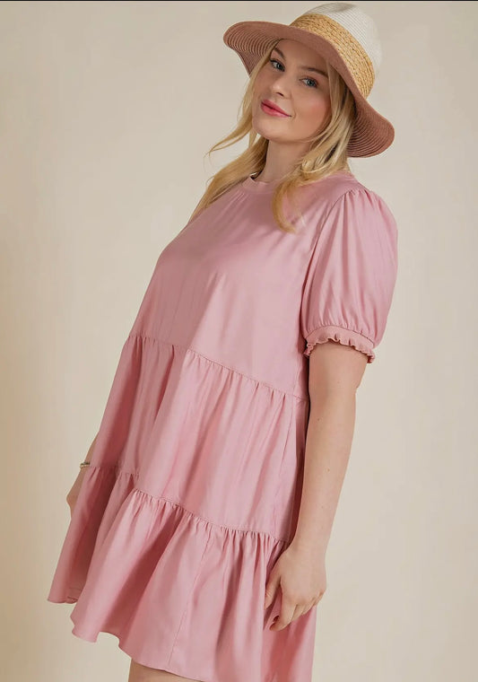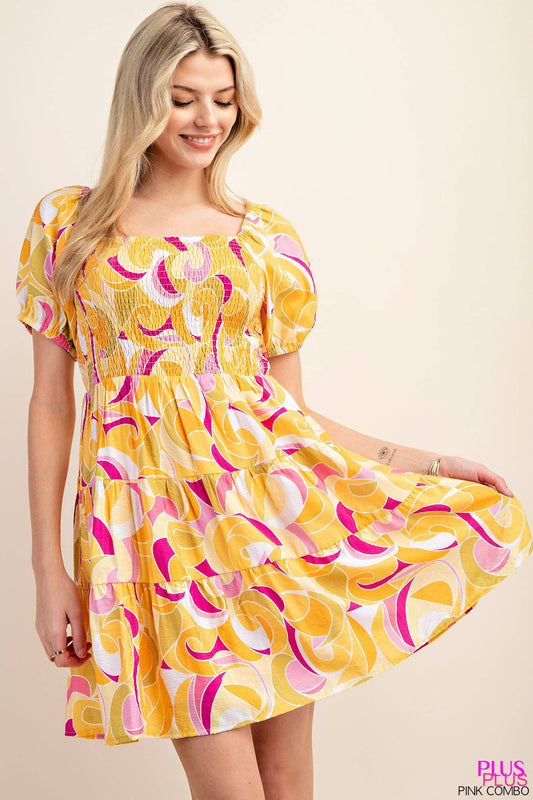 CURVY BABYDOLL SMOCKED TIERED PUFF SLEEVES DRESS