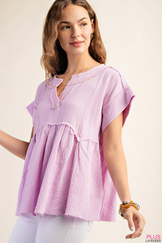 • CELY TEXTURED TOP RUFFLE NECK BACK BUTTON CLOSER