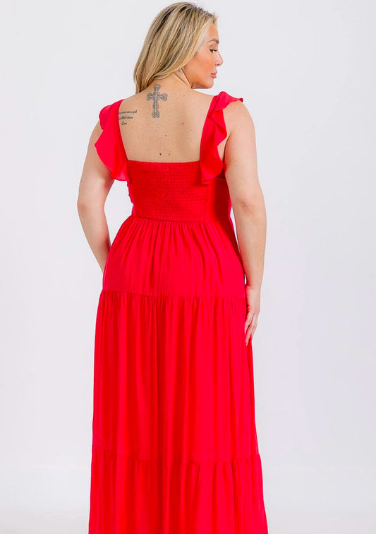 • CHIFFON SPAGHETTI STRAP BODICE CURVY MAXI DRESS