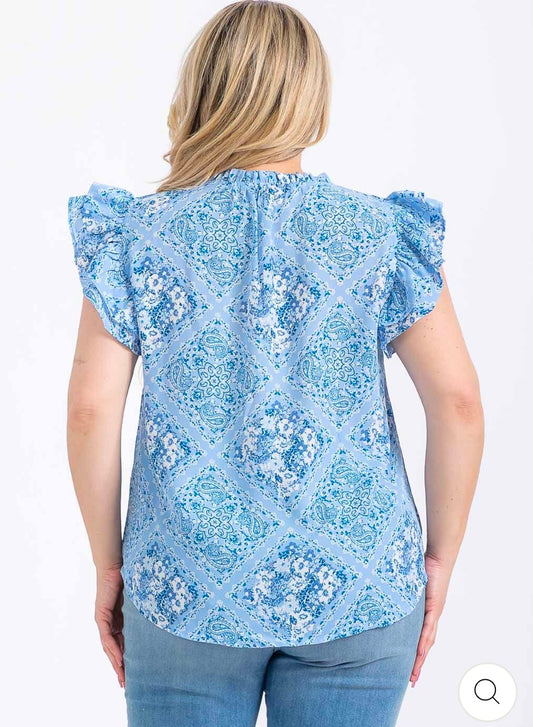 ROXIE PLUS SATIN RUFFLE SLEEVES TOP BACK SELF CLOSER