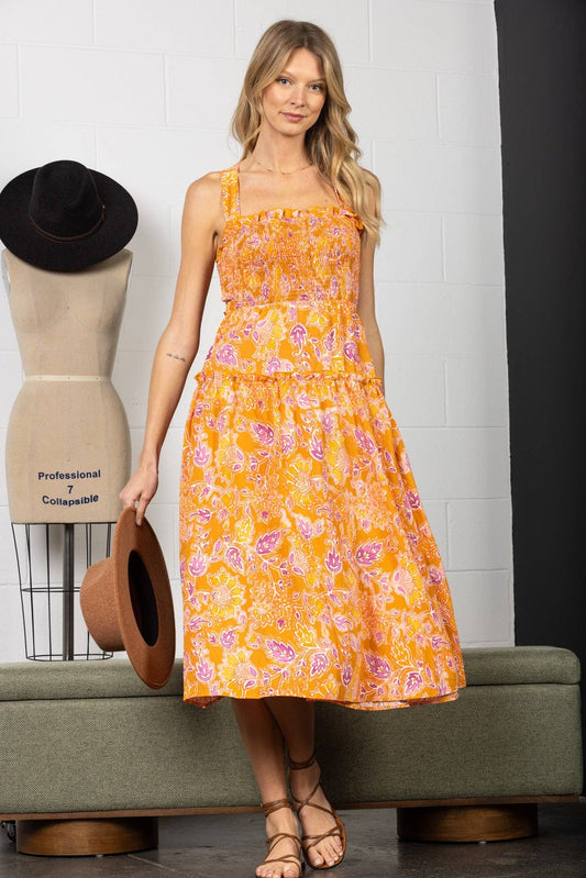 VANESSA ORANGE TIERED SLEEVELESS SELF TIE OPEN BACK MAXI DRES