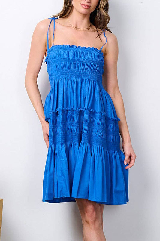 SLEEVELESS SMOCK TIERED TUNIC MINI DRESS