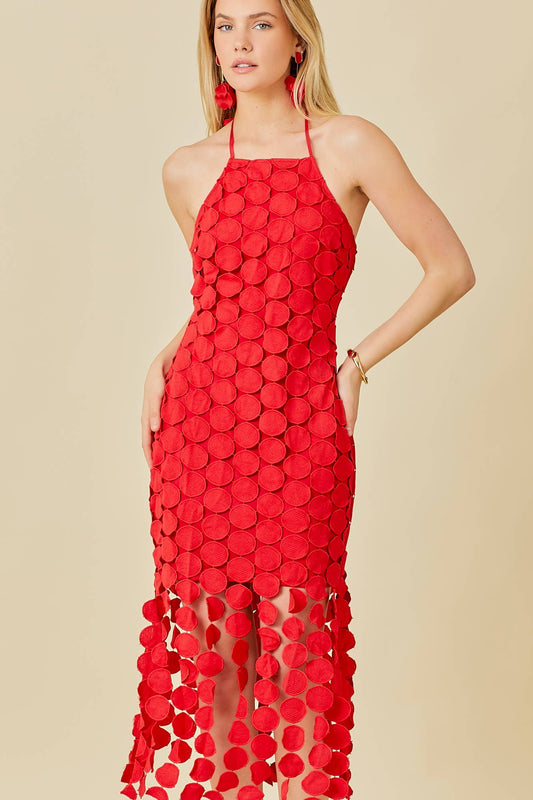 Circle Fringe Crochet flocking Midi Dress