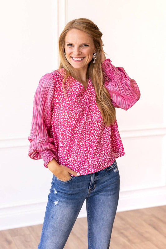 Flirty in Fuchsia Balloon-Sleeve Blouse