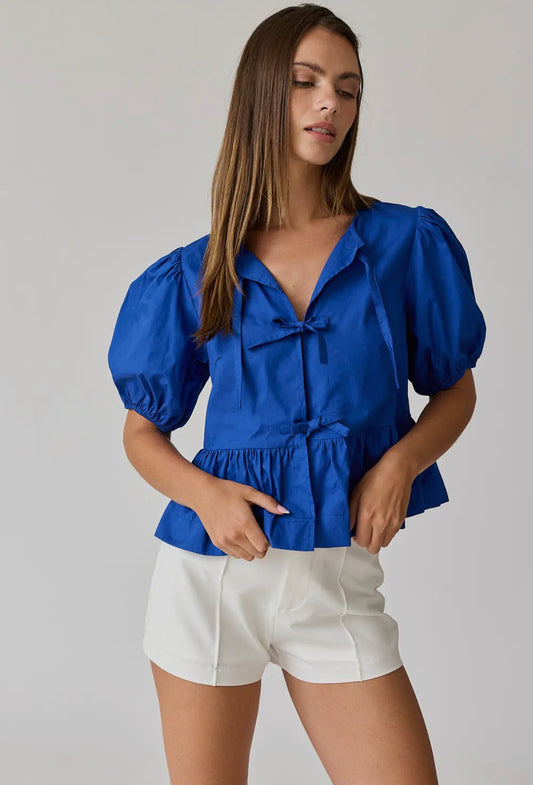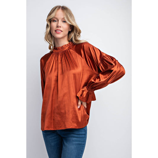ROXIE PLUS SATIN RUFFLE SLEEVES TOP BACK SELF CLOSER