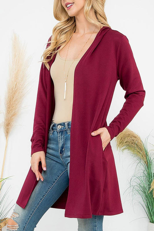 OPEN FRONT FRENCH TERRY HOODIE CARDIGAN
