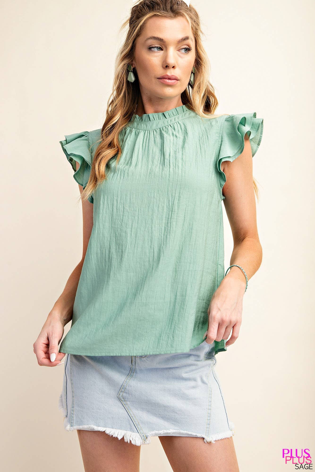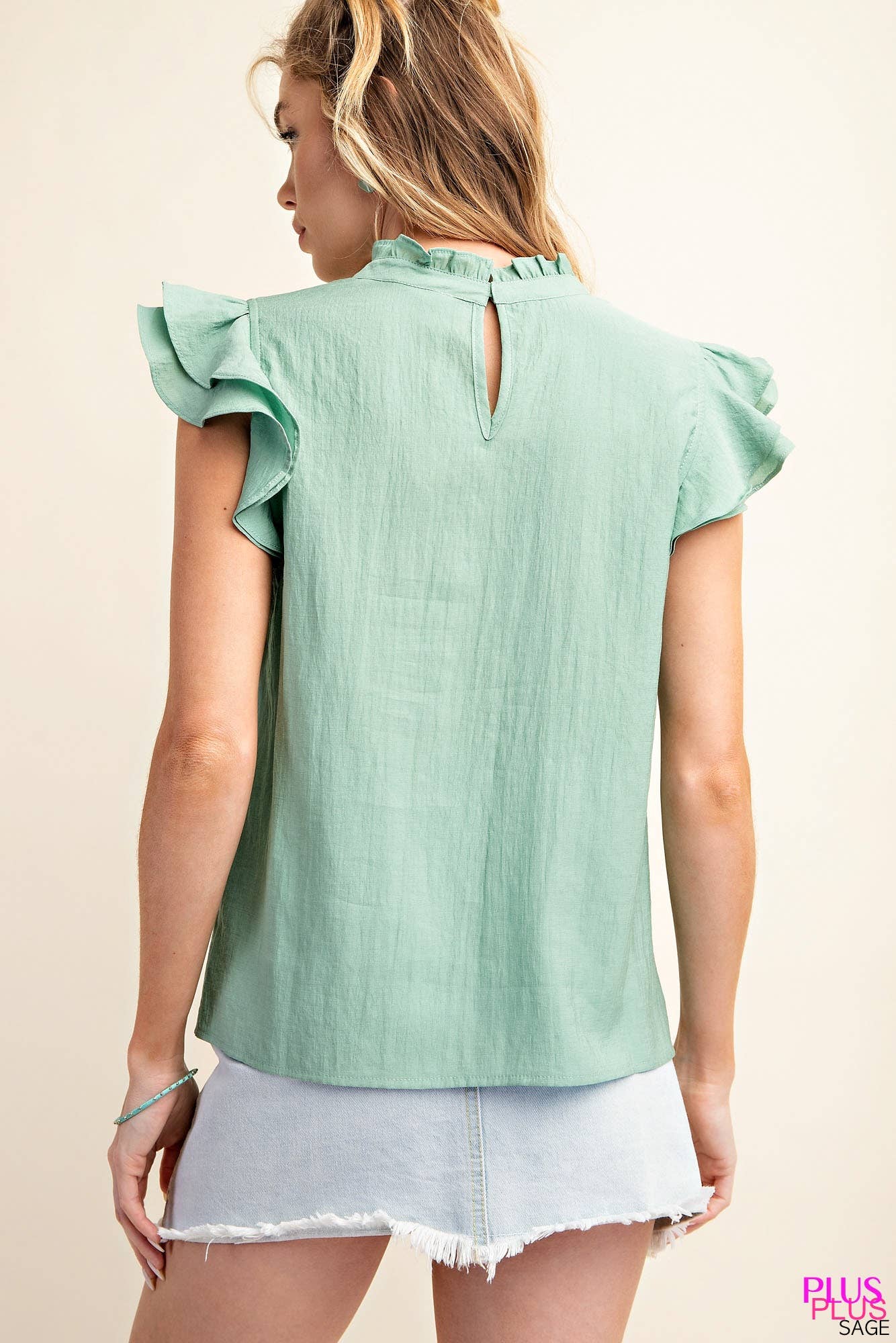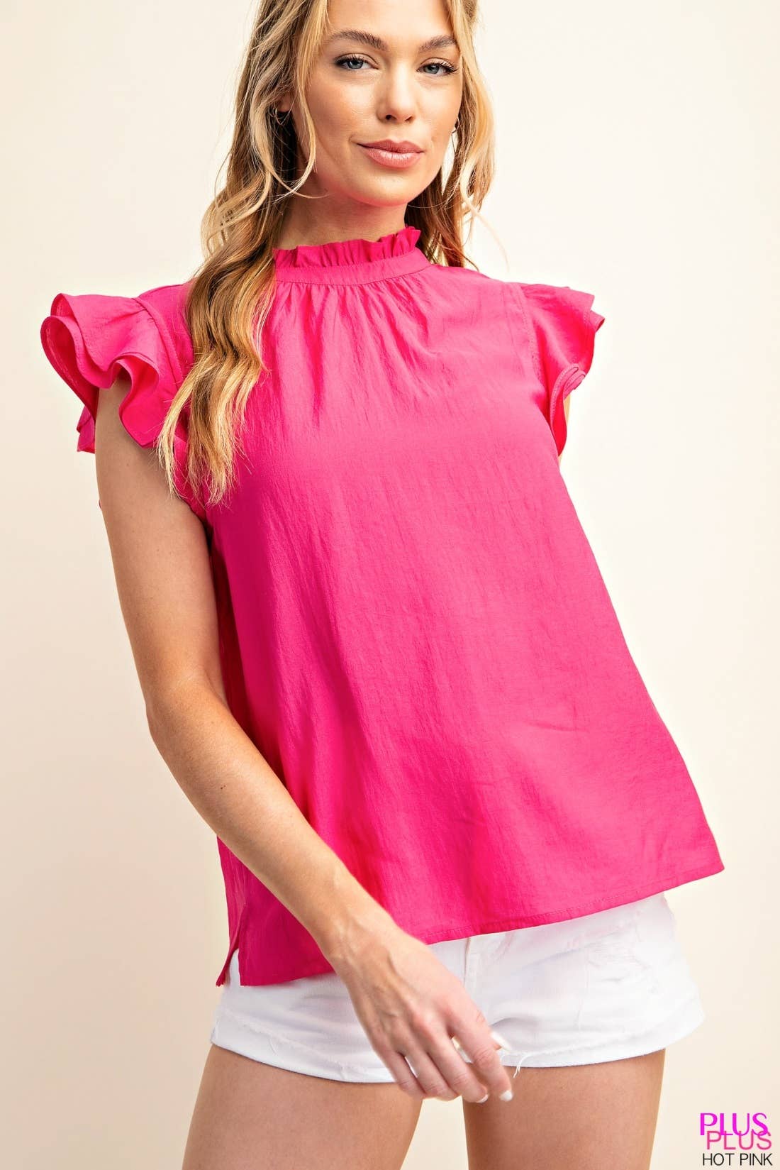 PLUS TEXTURED TOP RUFFLE NECK BACK BUTTON CLOSER